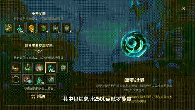 除了免费奖励,召唤师们在购买峡谷宝典后,通过提升宝典等级还可以额外获得各种宝典专属奖励,其中包括:总计2500魄罗能量、2520蓝色晶石、3个皮肤姿精选宝箱以及若干蓝色晶石加成礼包、队伍加成礼包、表情、头像、边框、击败印记、回城特效、战旗和名片框等丰富游戏道具。