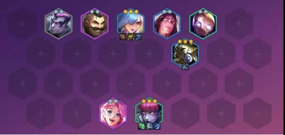 阵容组成:诺克萨斯之手德莱厄斯、蒸汽机器人 布里茨、荆棘之兴婕拉(阵容主C)、瓦洛兰之盾塔里克、曙光女神 蕾欧娜、冰霜女巫 丽桑卓、星籁歌姬 萨勒芬妮、弗雷尔卓德之心 布隆