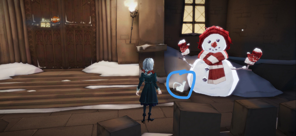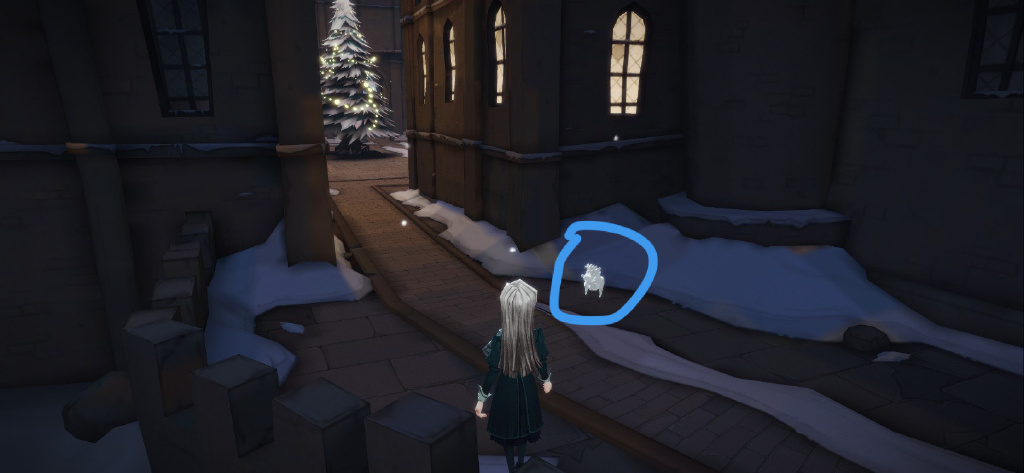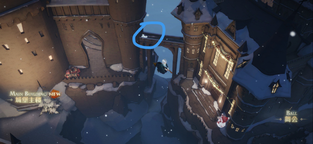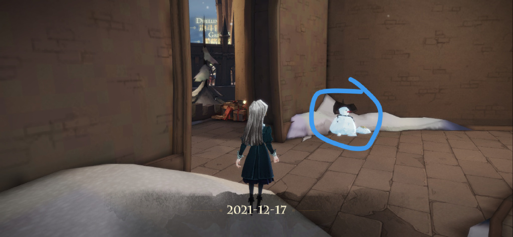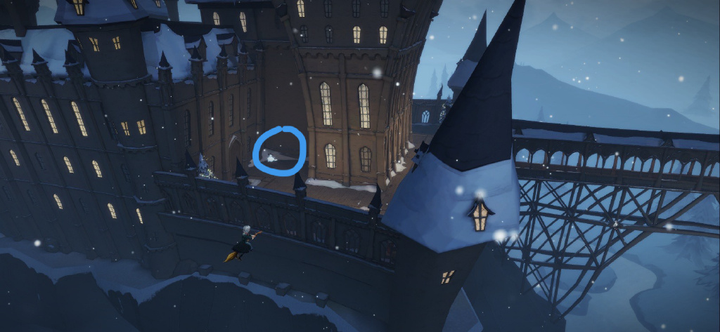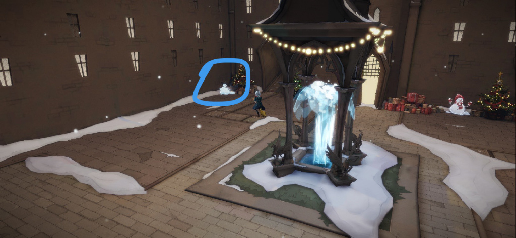 4、靠近魁地奇球场的城堡角落,魔棒小雪人