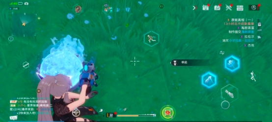 ③站在冰球旁边,保证屏幕上有《举起》这个按钮,使用《原能手炮》对准脚下