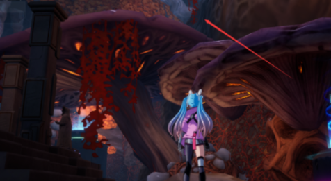 ③获取宝箱2后,可通过原能手炮垫高自身位置,然后通过滑翔+闪避回到大蘑菇上(如图)