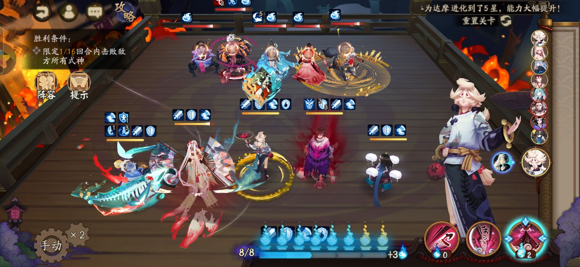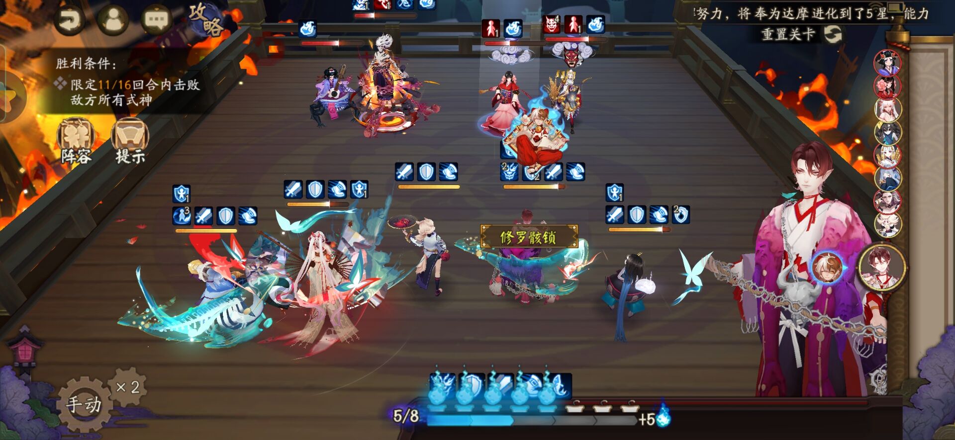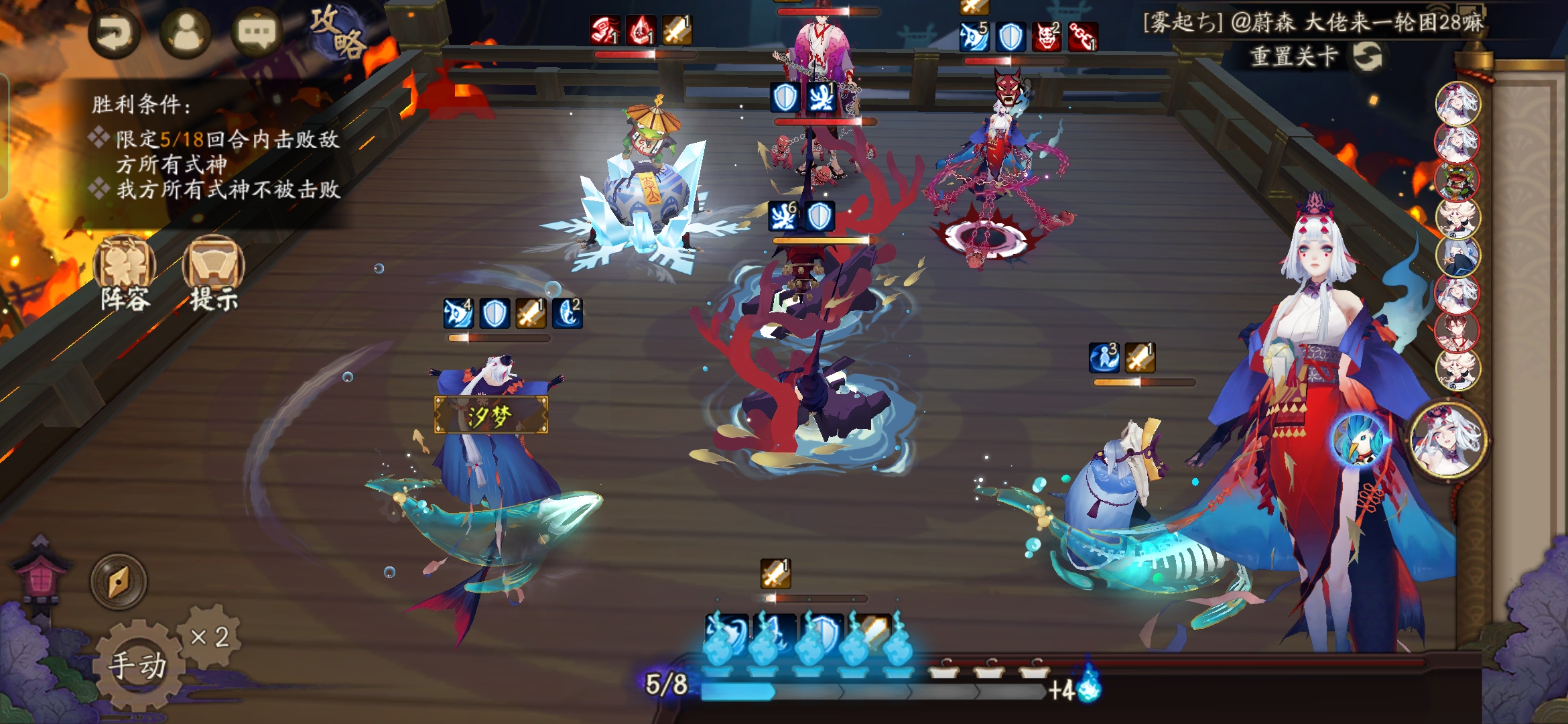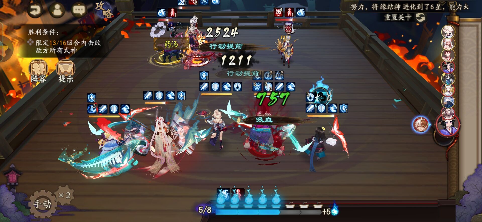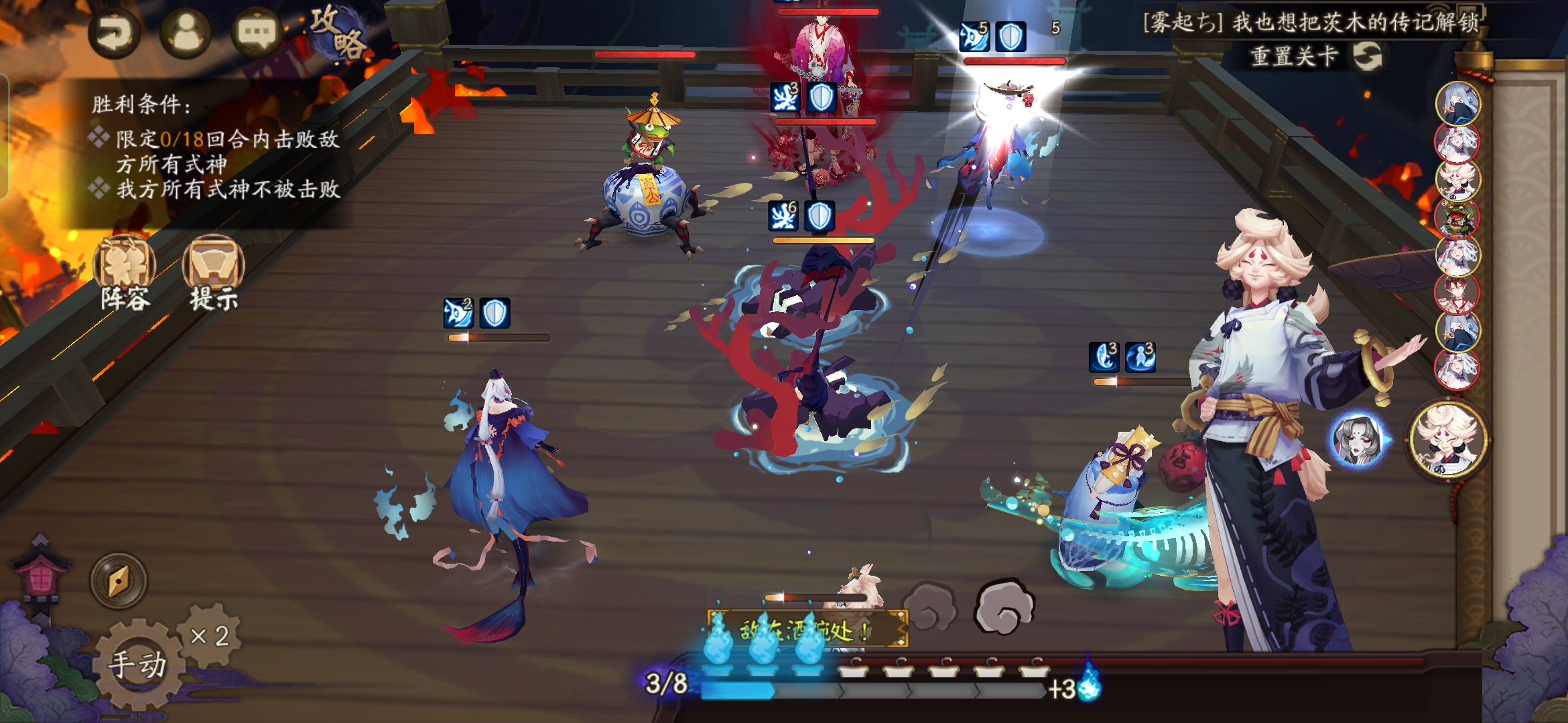 不知火普攻樱花妖,星熊大招继续给到御馔津,化鲸普攻鬼吞。