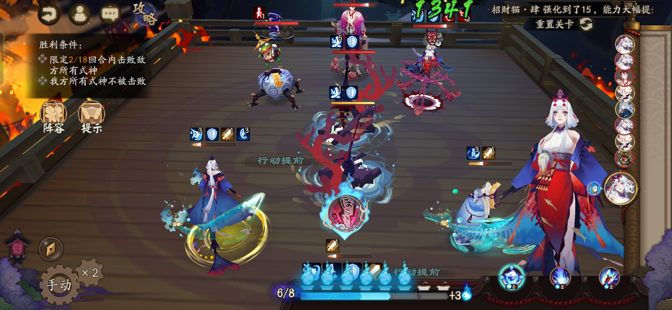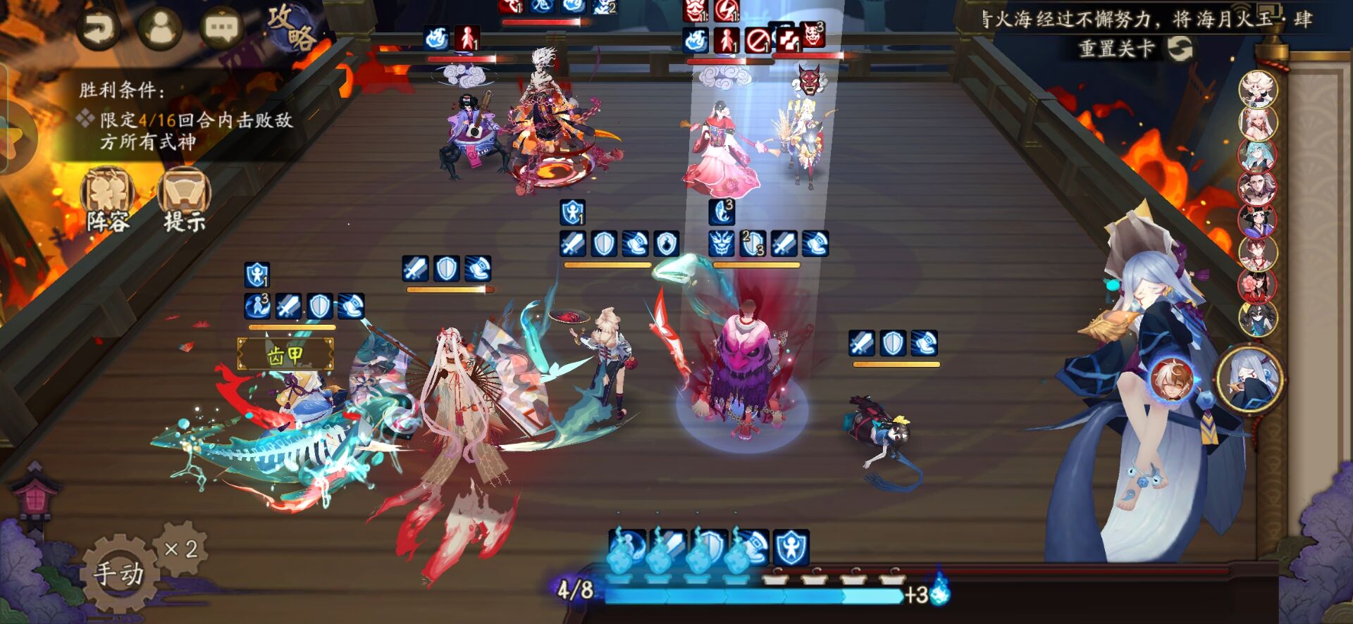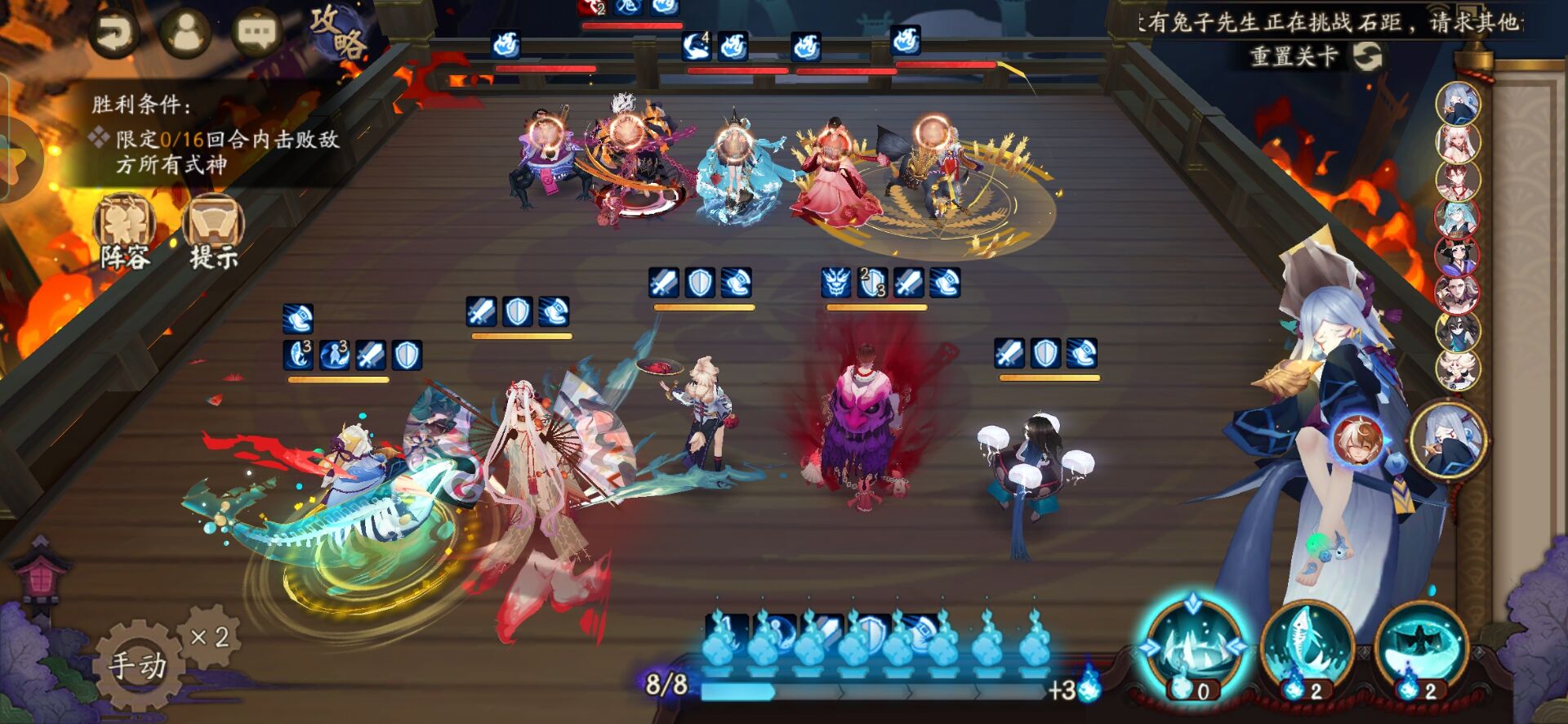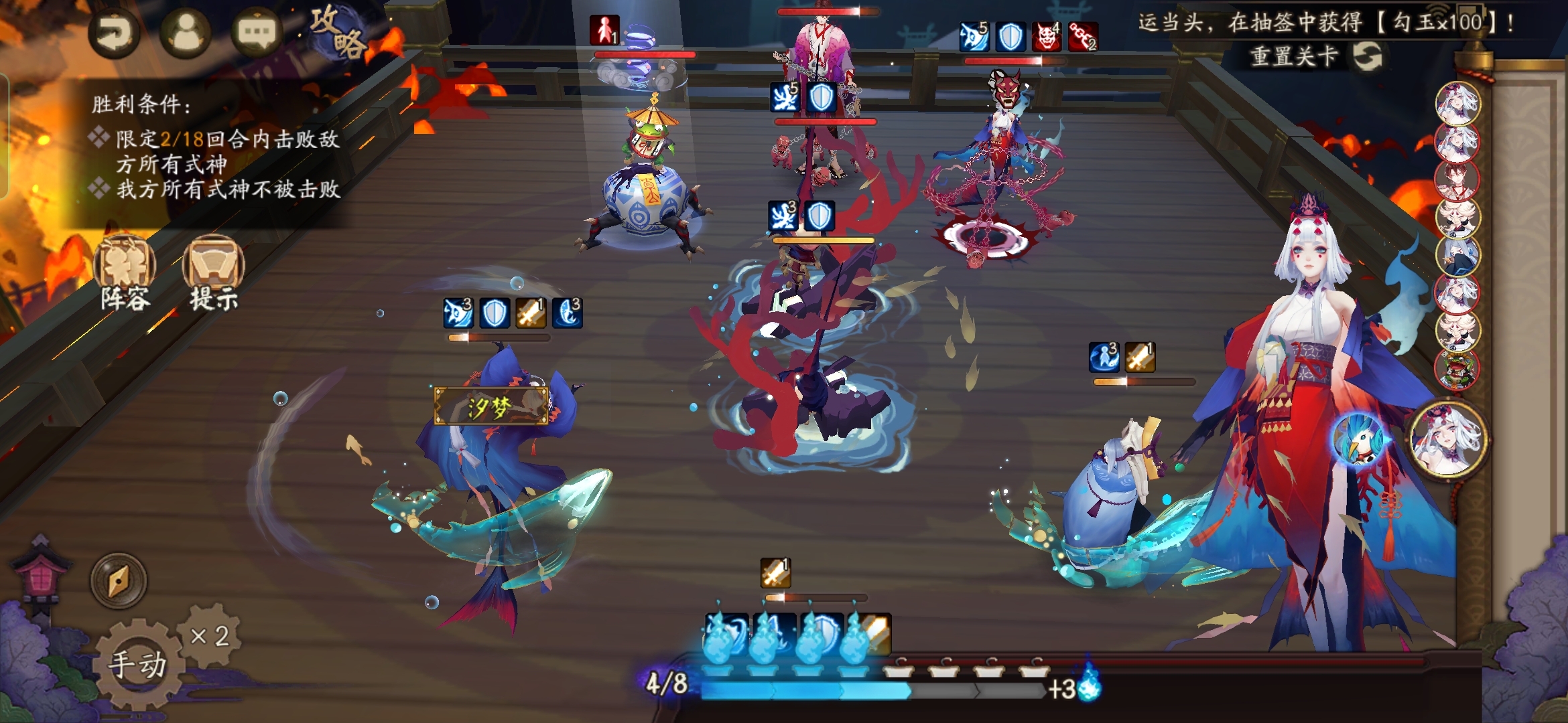 不知火普攻樱花妖,星熊大招继续给到御馔津,化鲸普攻鬼吞。