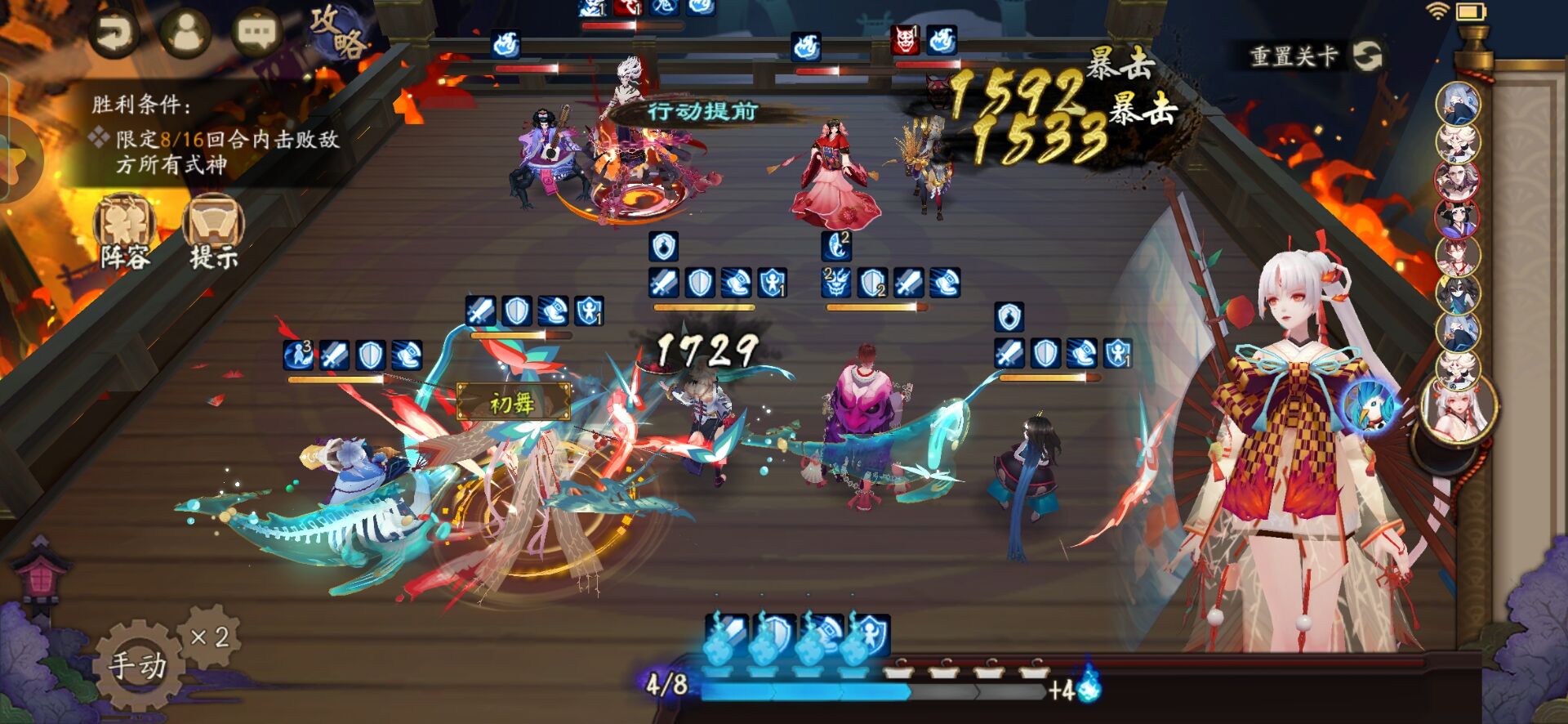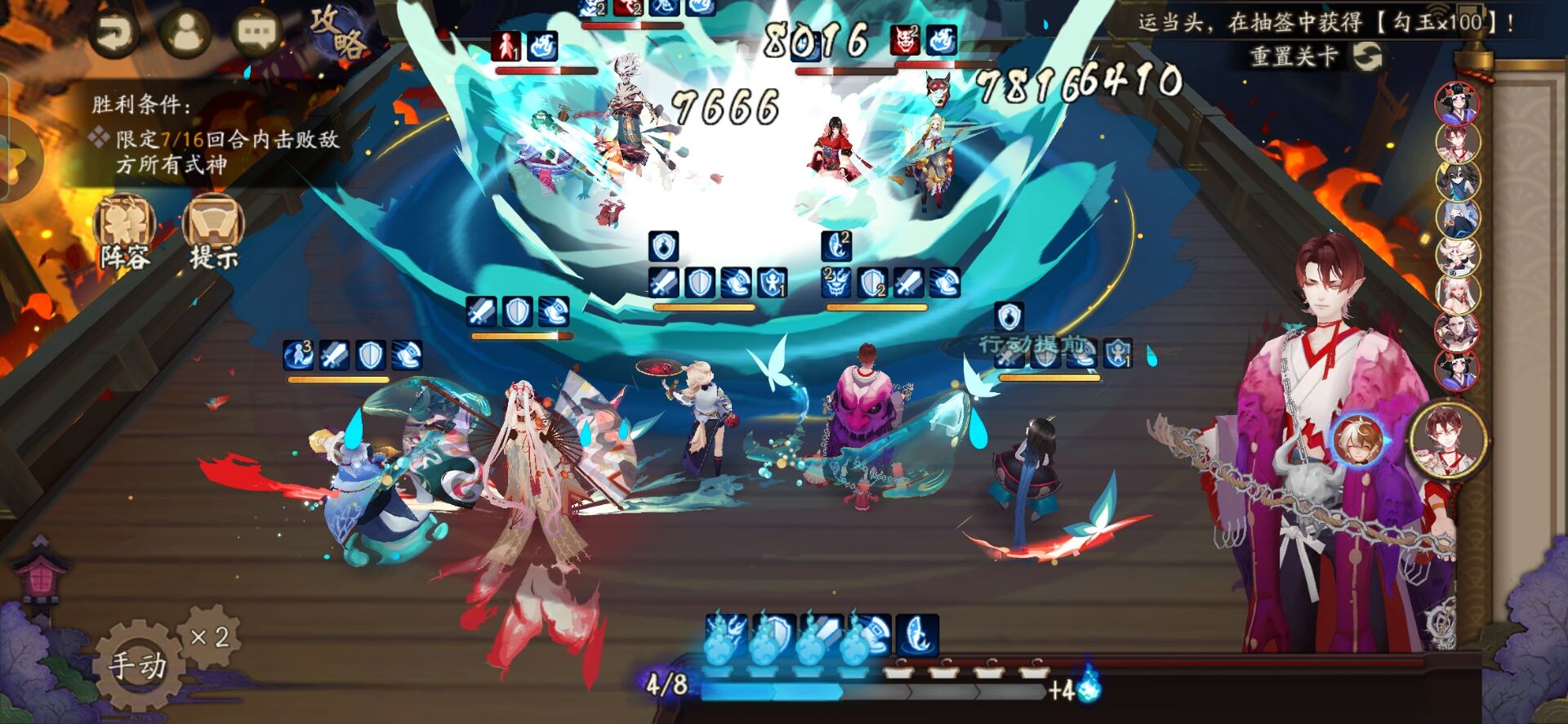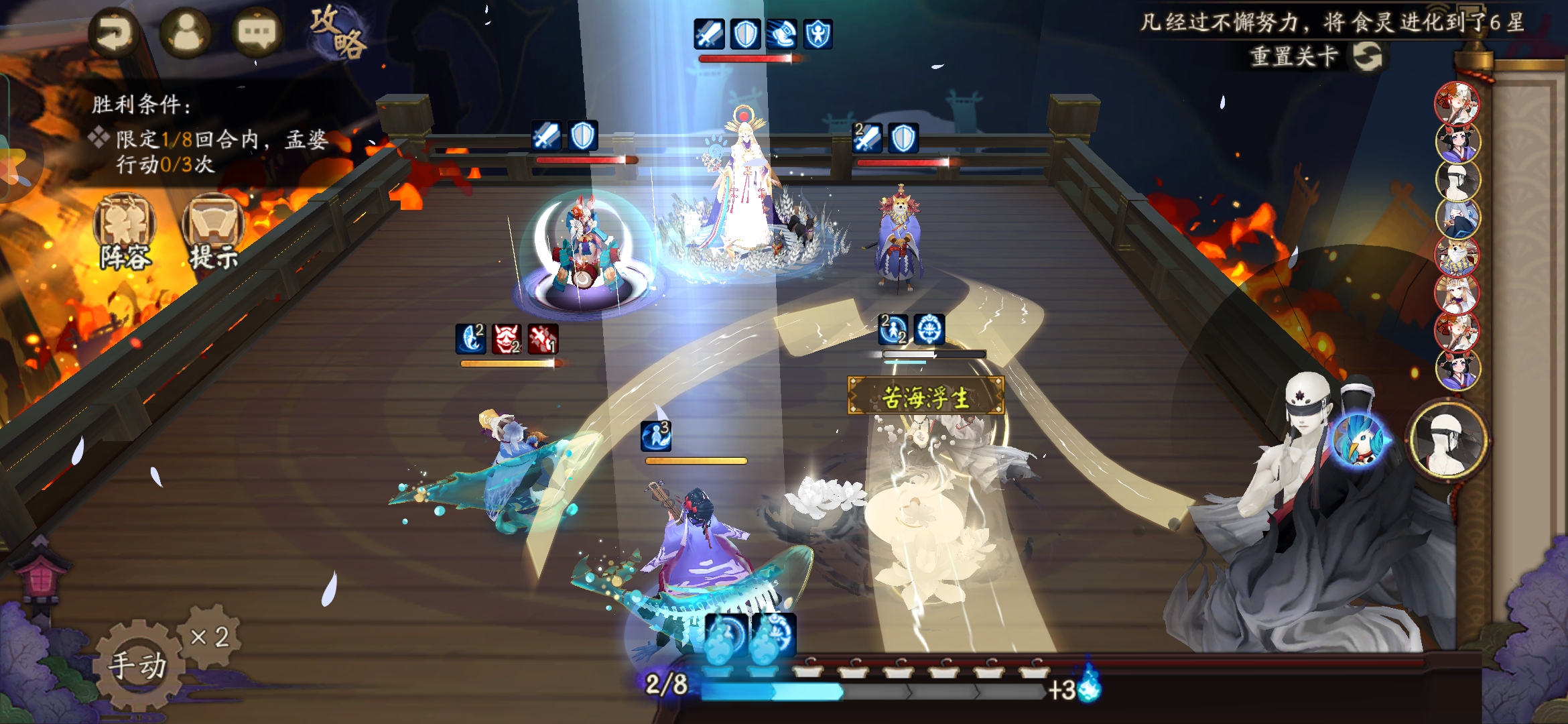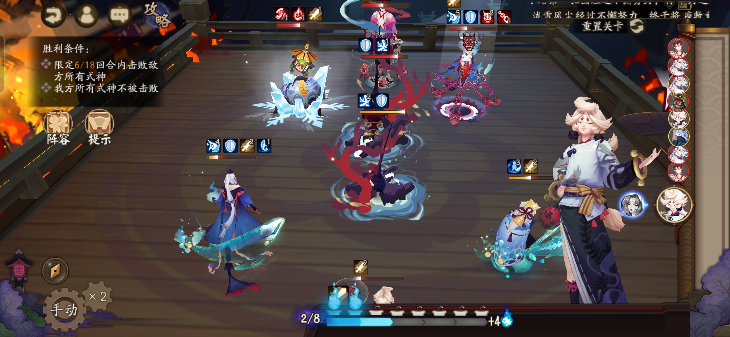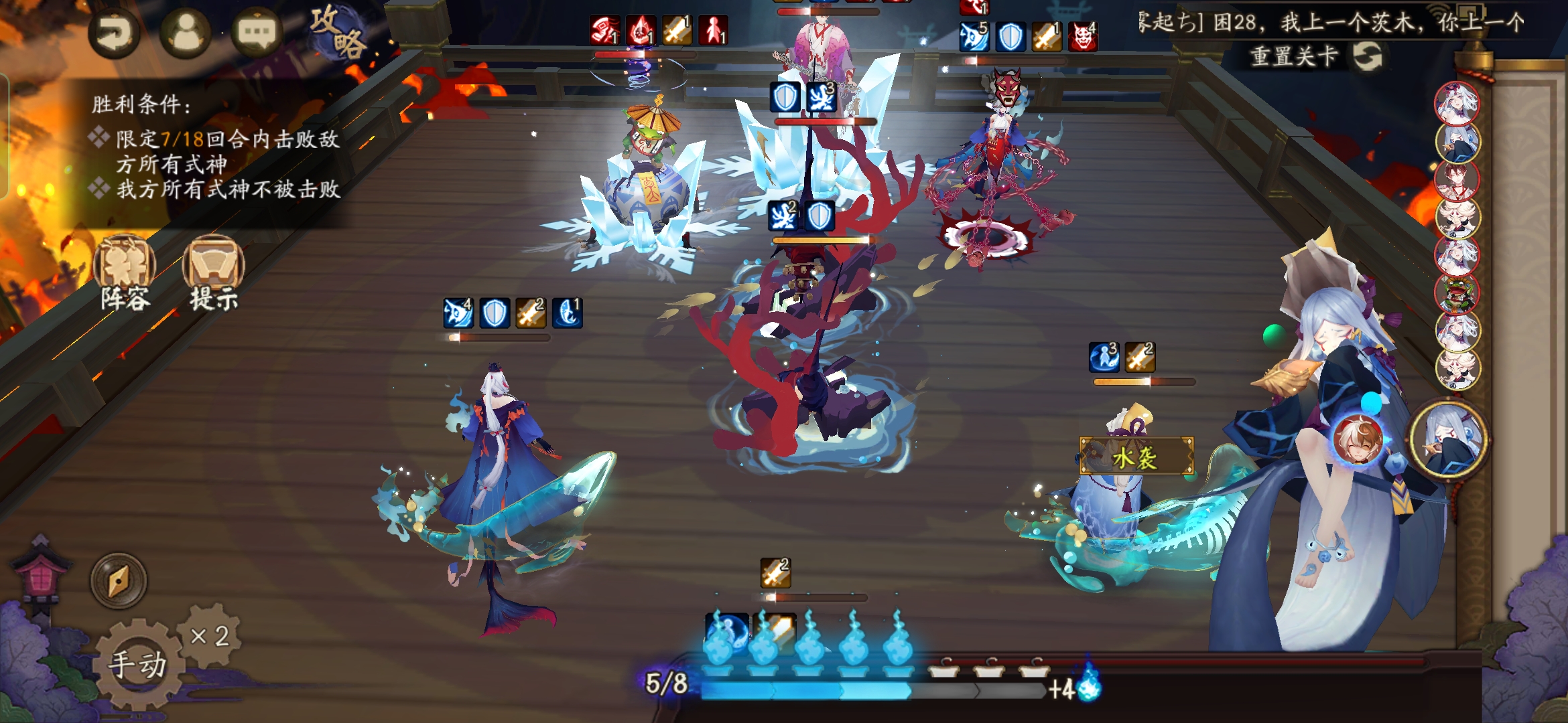 不知火普攻樱花妖,星熊大招继续给到御馔津,化鲸普攻鬼吞。