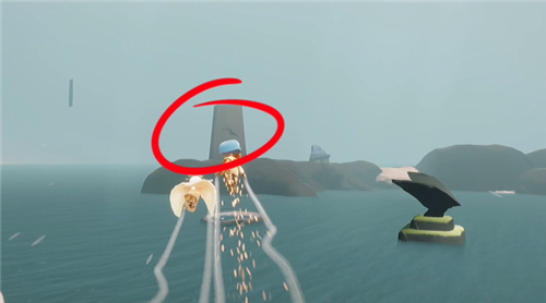 1.首先光之子们来到全新的深海地图中,往下图所示这座塔塔的地标建筑飞去。