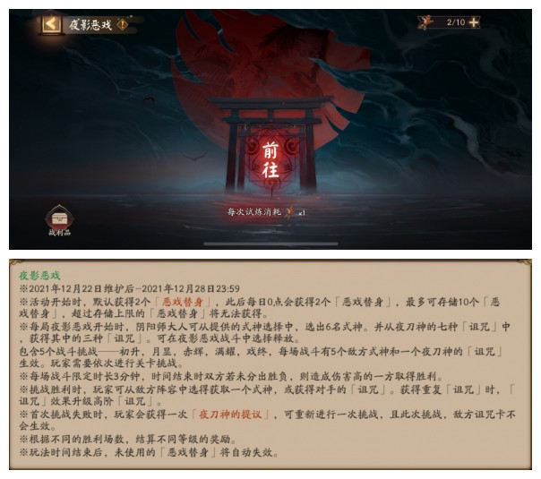 *阴阳师大人可消耗'恶戏替身'参与夜影恶戏玩法,每轮挑战共有5场战斗。