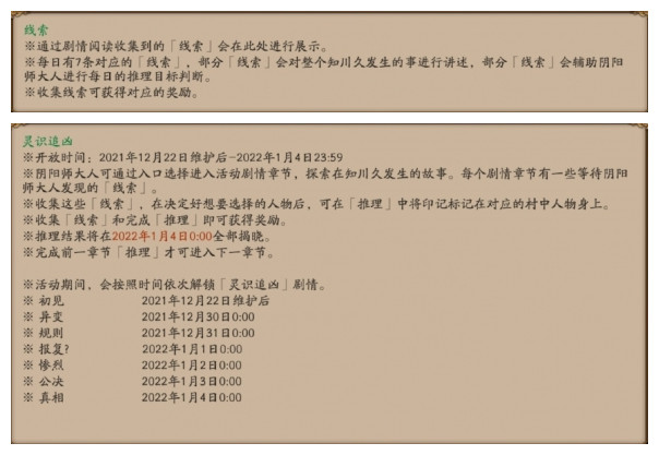 *阴阳师大人可通过获取'线索'与完成'推理'来获取灵识追凶的奖励。