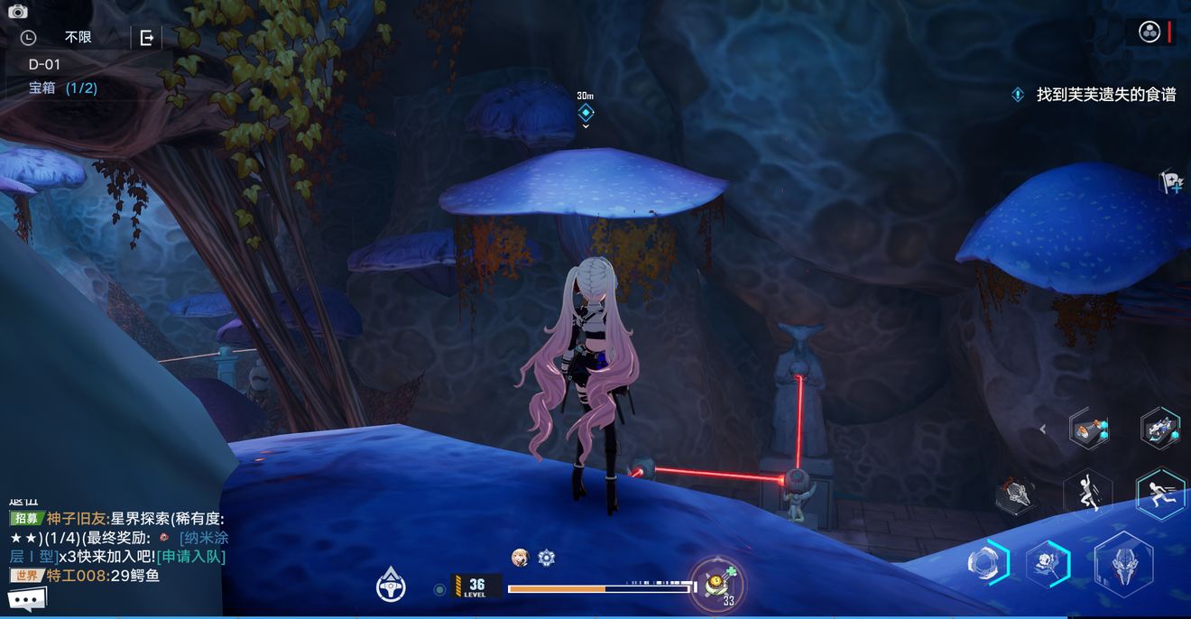 简单:第一个宝箱在我们采蘑菇的那个大蘑菇右侧门内,然后到了之后用原能手炮垫高就好了。