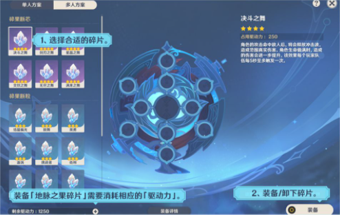 装备「地脉之果碎片」需要消耗对应的「驱动力」。消耗的「驱动力」越多,就能激活越多、越强大的「地脉之果碎片」。