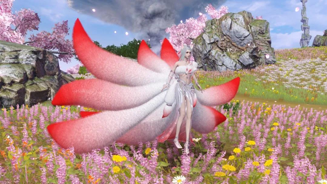 9.当然,拥有流焰之尾的旅者们们也将会是大荒中最靓的狐,使用情绪后切换成的灵狐形象也是不同的,blingbling非常闪耀哦~