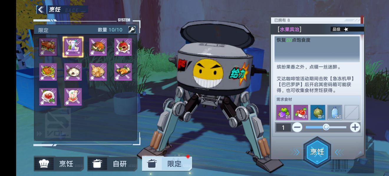 说在前头的话:本次的新菜谱应该只是活动道具,可以吃,但是统一只加20饱食度,没有特殊效果,也不计入解锁的菜谱,有点遗憾。