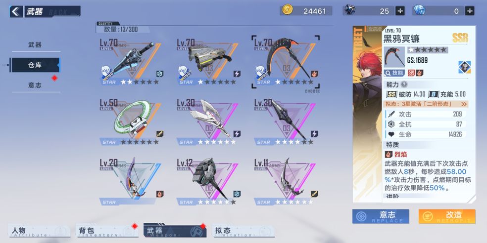 镰刀:清任务,打杂兵,特点是aoe平A出手速度快,多段连招灵活,破盾可以,不依赖体力与技能输出。