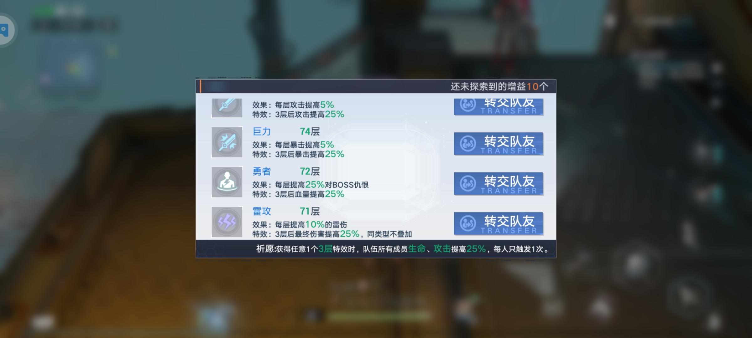 6、副本内有10种BUFF属性分别为:物理加成、嘲讽加成、单属性加成、治疗量加成、防御加成。