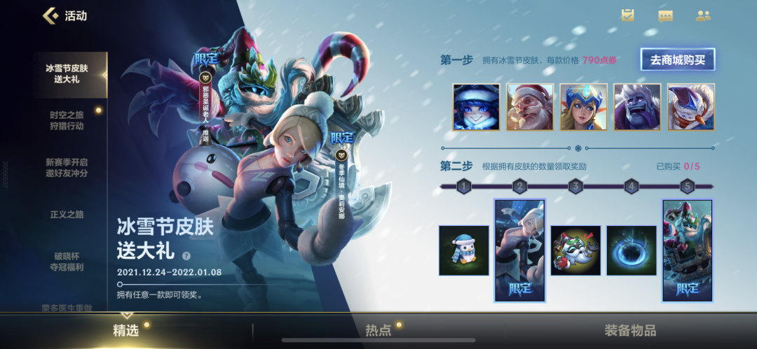 街机cn 来源:厂商 发表于:2021-12-25英雄联盟手游冰雪节皮肤好看吗?英雄联盟手游更新到了2.6A版本,同时上线了全新的冰雪节系列皮肤,有不少小伙伴想知道本次冰雪节皮肤都是哪些英雄的,好看吗,下面一起来看看吧。