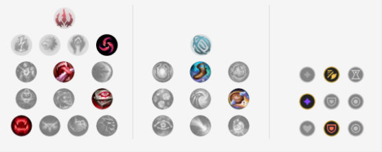 主系方面主打爆发输出,丛刃配合我们的普攻触发提供后三次普攻的攻击速度,血之滋味伤害敌人可收益一定的回复效果,保证我们的对线续航,眼球收集器随着击杀守卫永久提升我们的自适应收益,贪欲猎手随着击杀永久将我们的技能伤害转换为治疗效果。