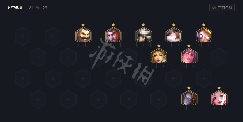 一般4-2上八搜卡,抽到2星剑姬以及三名流即可上九,补出杰斯凑出完美羁绊。
