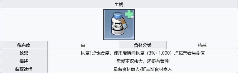 单独食用恢复1点饱食度,增加3%和1000点生命。