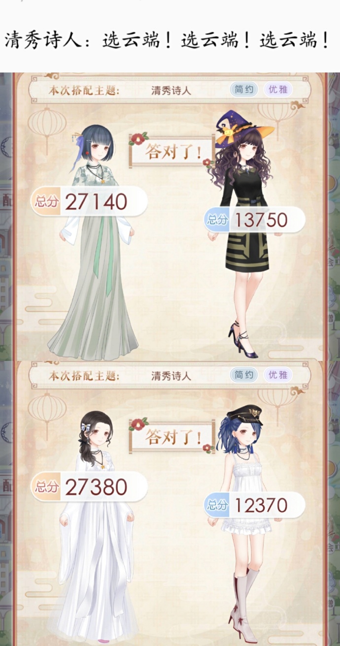 1、【清秀诗人】需要选择简约、优雅、清纯的服装,颜色一般是浅色系,例如粉色、绿色,而且一般是平底鞋(这点很重要)。如果出现了云端、田园风、民国的搭配,建议选择
