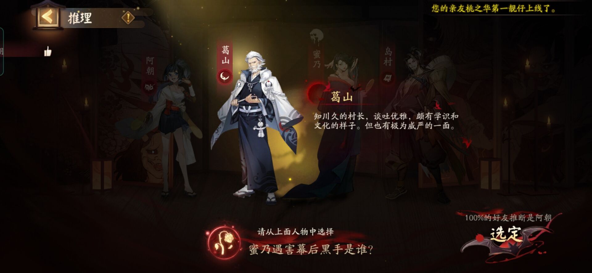*每个剧情章节将会有一个'推理'目标,需要阴阳师大人在四位村中人之间指认。