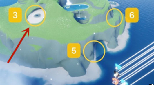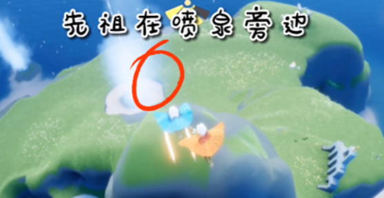 连体裤先祖位于岛上的喷泉附近,各位结合上图的区域3,以及下图红色圈圈所标示的区域,就能够轻松找到蹲在地上的先祖记忆虚影。
