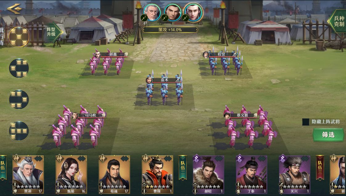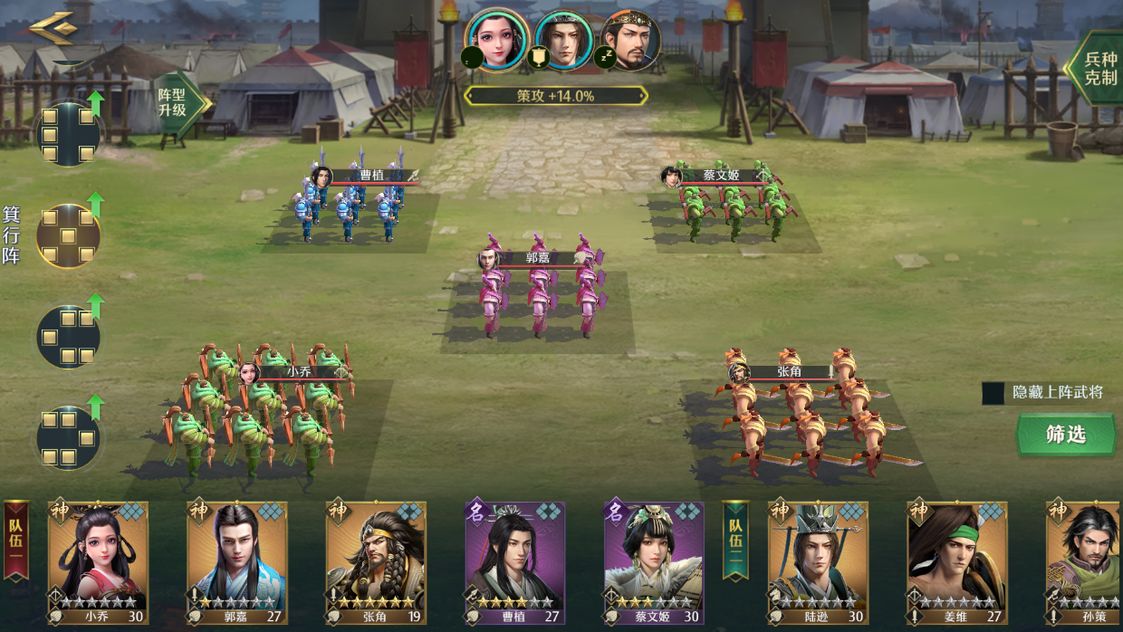 1.推荐阵容一:郭嘉、蔡文姬、曹植、张角、策攻武将/小乔(非看破使用)