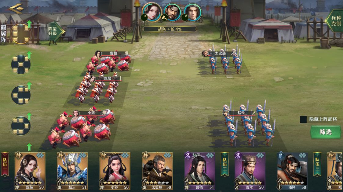小乔和曹植都是系统赠送的恢复士气类的武将。由于甄姬不是那种技能使用完后可以自己恢复100士气值的武将,双士气加成组合更容易保证甄姬每回合都稳定提供治疗,同时让两名战法输出武将打出更高的伤害。