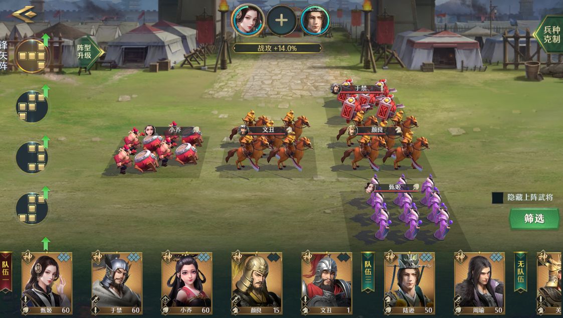2.推荐阵容二:甄姬(需要高星)、文丑(高顺)、颜良(程普)、小乔、于禁(华雄)