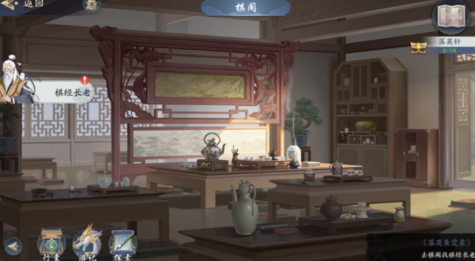 17、进入落英后殿,进入书阁,书经长老(聊天),进入棋阁,棋经长老(聊天),琴经长老(聊天),隐藏任务做法。