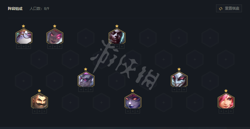 前期留好打工牌,保证打工牌质量高,稳血上人口寻找阿卡丽,8人口有一定战力要拉9寻找2星阿卡丽。