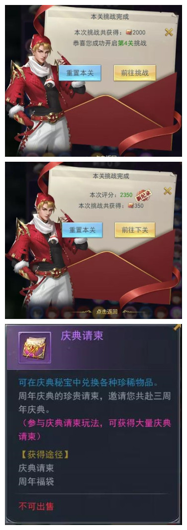 每关都能反复挑战,多挑战几次拿到更高的评分,就能获得更多的庆典请柬。