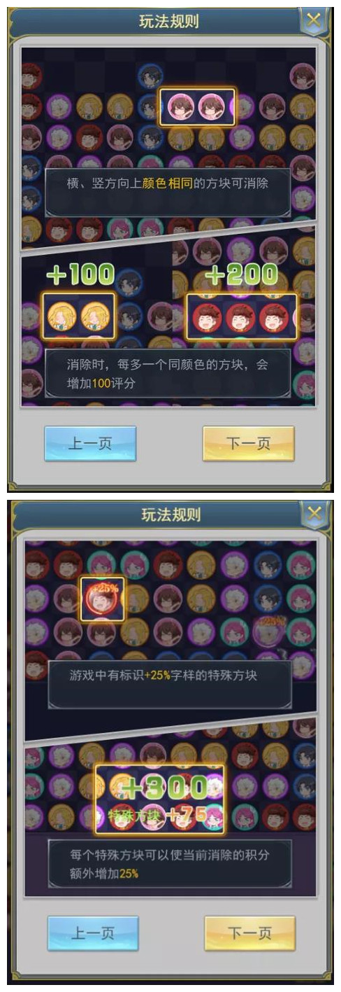每一关会有特殊方块,当玩家消除特殊方块时,当前这一步消除获得的积分会额外增加25%。