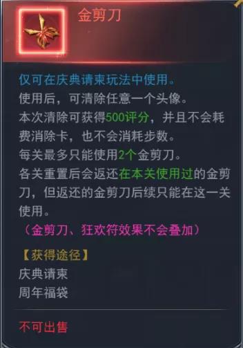 使用金剪刀可直接消除一个表情块,获得500评分,该操作不会消耗步数。