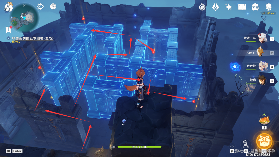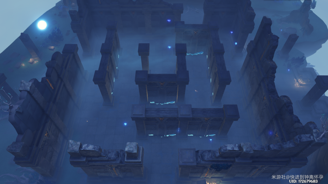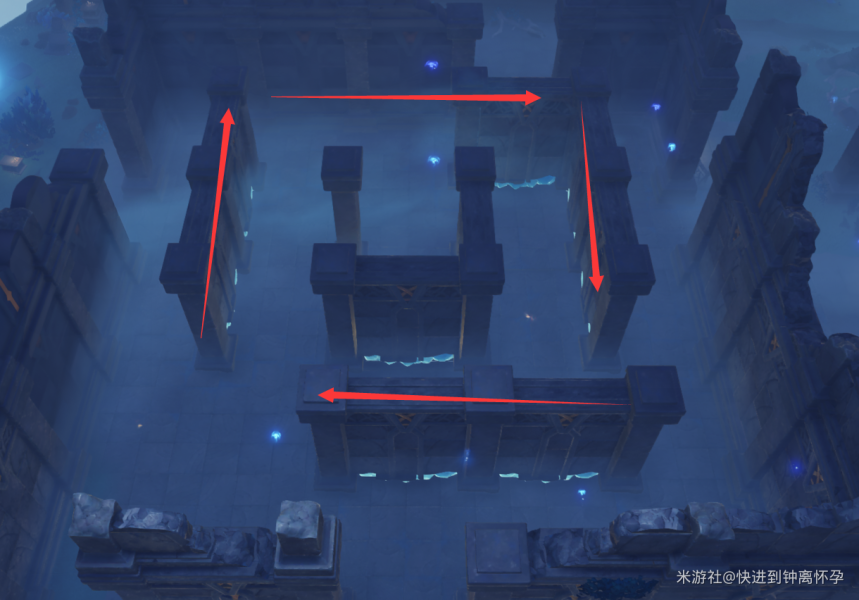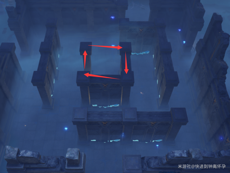 完整的迷宫就出现了,然后我们顺着路去把里面的水属性柱子点亮,顺序不分先后都点亮即可
