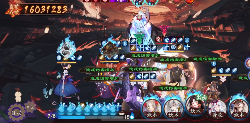 开局千姬插锤子之后切普攻,我方标记草人,如果扛不住BOSS的伤害可以开盾抗一下,其余时间全程贴灭即可。如果缘结神在1min30s的时候还没有七层缘就可以考虑退出重来了。后期时间不够清姬可以穿插切普攻几回合。