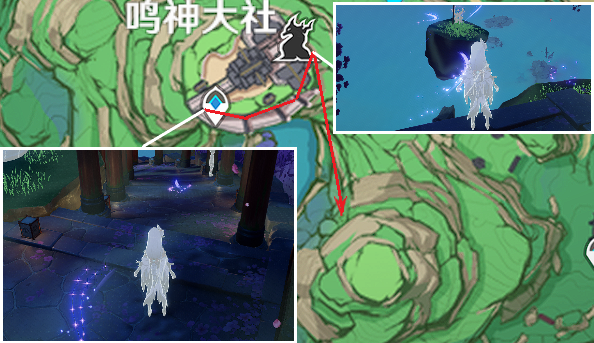 3、开启元素视野追踪。大致路线如图,先一路顺着回廊做到底,然后拿上旁边的雷种子一路飞过去即可