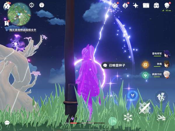 下楼梯后元素视野指向空中飞过去拿了种子继续飞,就可以触发后续任务