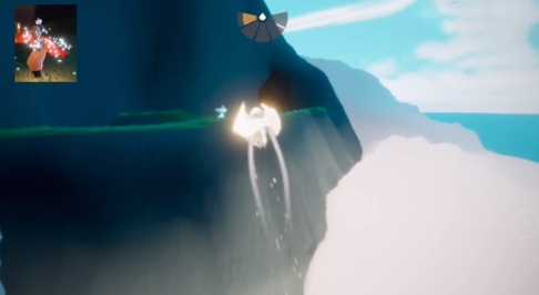 1、首先进入晨岛地图,一直飞到终点神庙,然后穿过云洞;
