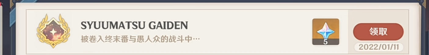 5.剧情结束后就会获得成就SYUUMATSU GAIDEN。