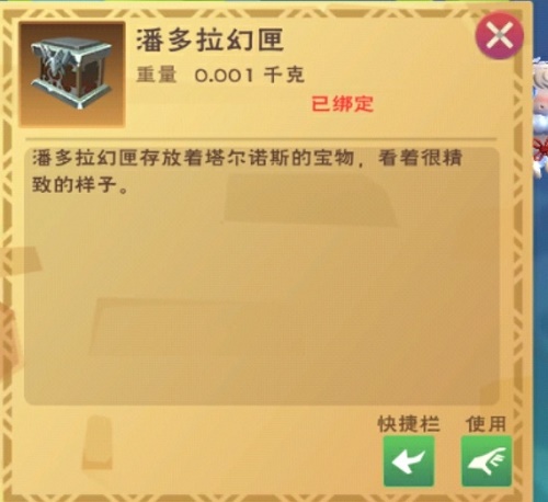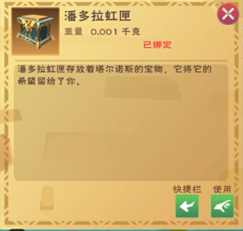 2、目前有三种掉落物,潘多拉幻匣、潘多拉密匣、潘多拉虹匣,潘多拉各种匣打开可以获得地火深渊的采集物以及一些魔法剂品。