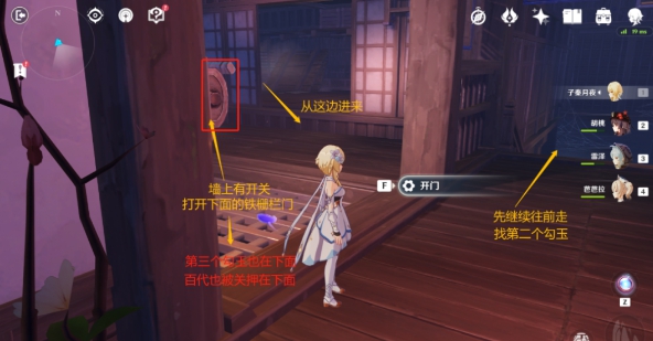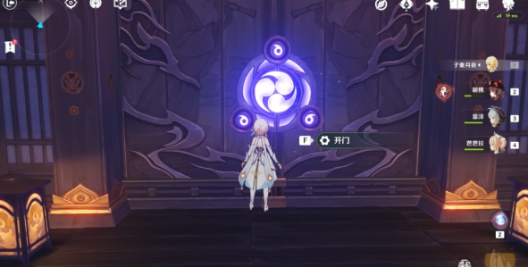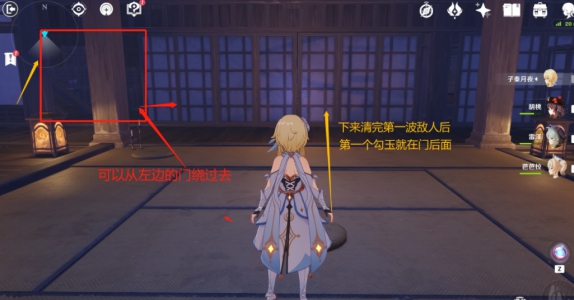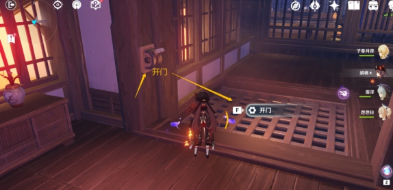 门内有个雷石碑,如果亮了可以不用管,如果没亮可以站门外用雷元素激活(好像有个箱子,拿过了就算了)