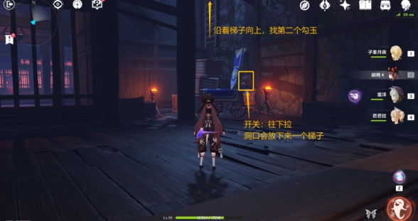 5-7:可以看到墙壁边的木柱上有个上下拉动的开关,拉动一下左边上方的洞就会出现一个梯子,爬上去。