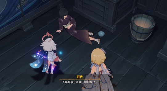 5-13:靠近敲一敲可与百代对话,会提示我们去找愚人众的老大,击倒他把钥匙抢过来。