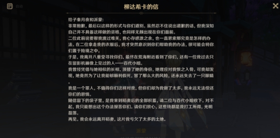 并留下了一封信和一袋摩拉,作为这段时间的感谢....只是她怎么会知道百代已经失去了一只眼睛呢?