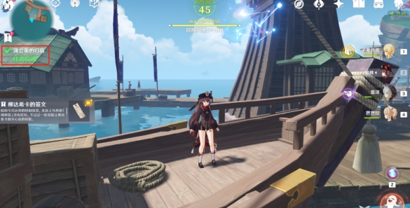 此时柳达希卡站在船上,穿着巫女的衣服,我们跑过去与之对话挽留。