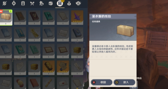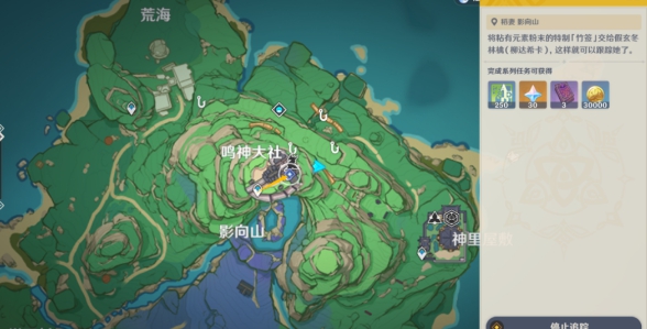 打开任务界面,可以看到任务已经触发了,显示着:将粘有元素粉末的特制竹签交给玄冬林擒(柳达希卡),这样就可以跟踪她了。