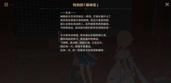 特别的御神签:这个御神签就是贯穿整个任务的核心,关键在于写的内容的含义。