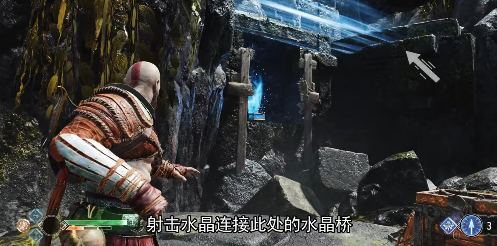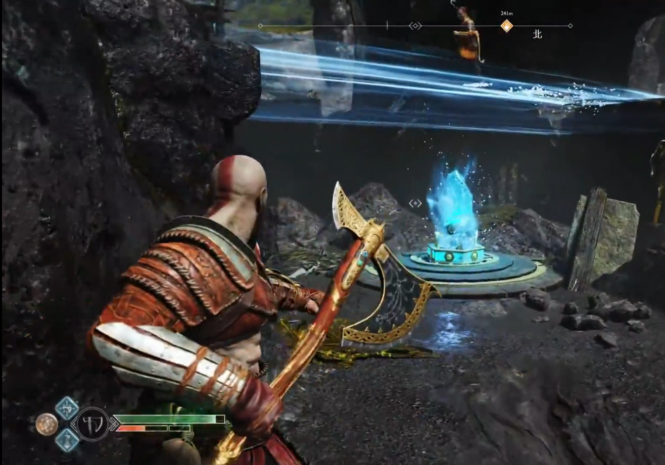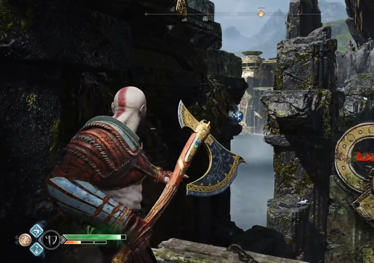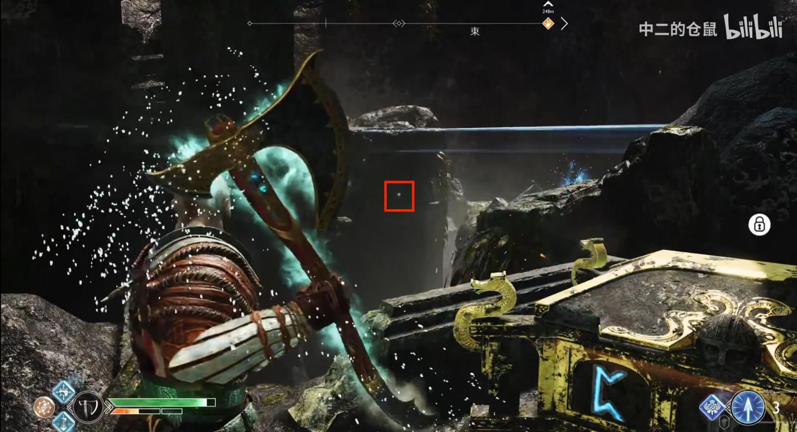 然后爬上去沿着桥一直走我们就能找到第三个封印点,使用飞斧丢过去即可。