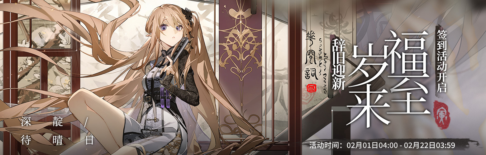 活动说明:活动期间内,玩家累计活动签到15日可获得新春家具、深靛专属时装、至纯源石、 应急理智顶液等活动奖励