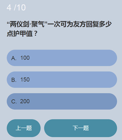 4、“两仪剑·聚气”一次可为友方回复多少点护甲值?