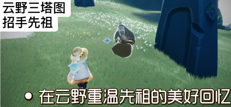 4、任务四:进入云野的三塔图里面,飞往中间的这座塔,下图所示,在上面可以找到回忆先祖,互动完成回忆。